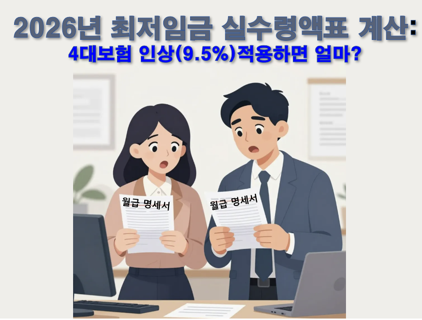 2026년 최저임금 실수령액표 계산: 4대보험 인상(9.5%) 적용하면 얼마?